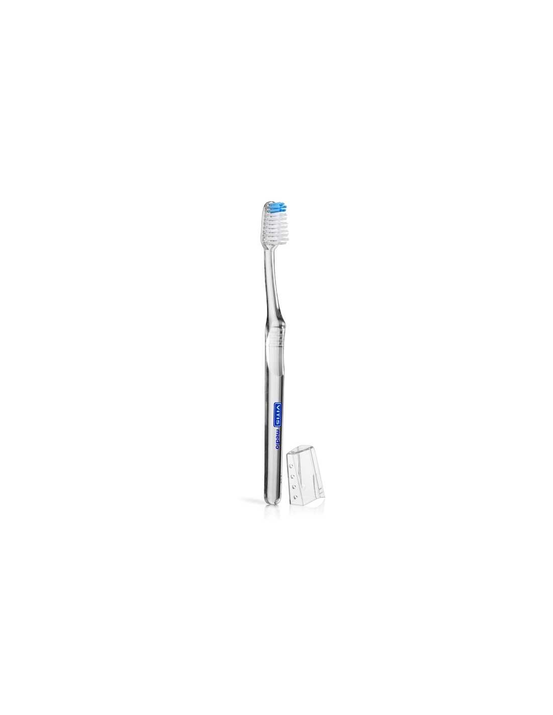Es un cepillo con cabezal normal y con forma diamantada para facilitar el acceso a zonas todas las zonas de la cavidad bucal. Mango anatómico y con estrías antideslizamiento para facilitar su uso. Tiene un capuchón para proteger los filamentos.