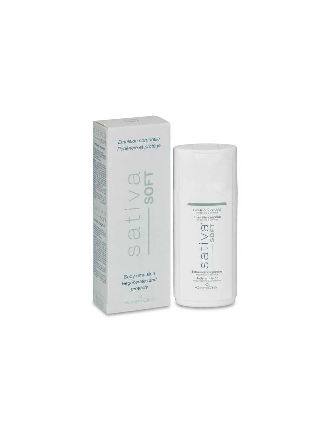 Sativa Soft Emulsión Corporal 200ml, cuidado delicado para pieles agredidas. Fórmula específica para pieles sometidas a tratamientos agresivos. Hidratación intensiva que regenera y protege. Incluye ácido hialurónico, avena sativa y aceite de jojoba.
