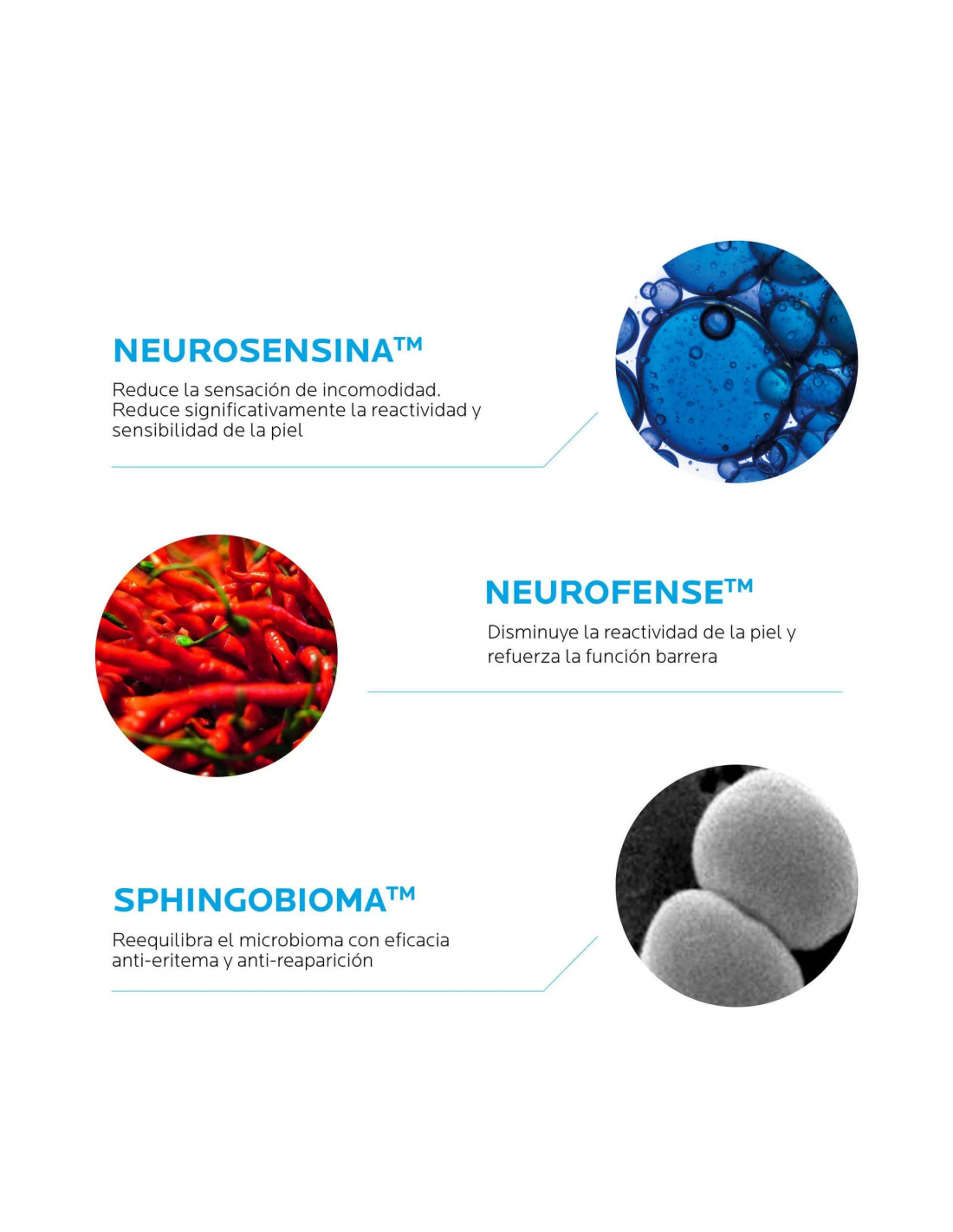 Formulado con Sphingobioma, nuestra innovación que ayuda a compensar la función del microbioma. Niacinamida, para calmar y reparar la piel y agua termal de La Roche Posay calmante y anti-irritaciones.