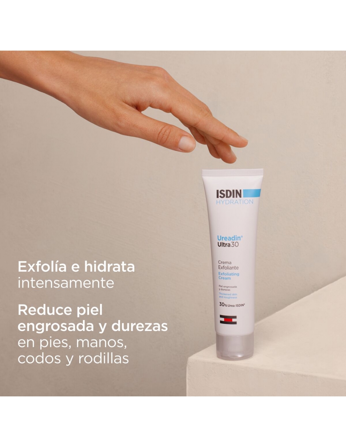Ureadin Ultra 30 alisa y flexibiliza la piel, gracias a la actividad rehidratante y microexfoliante de la Urea Isdin.