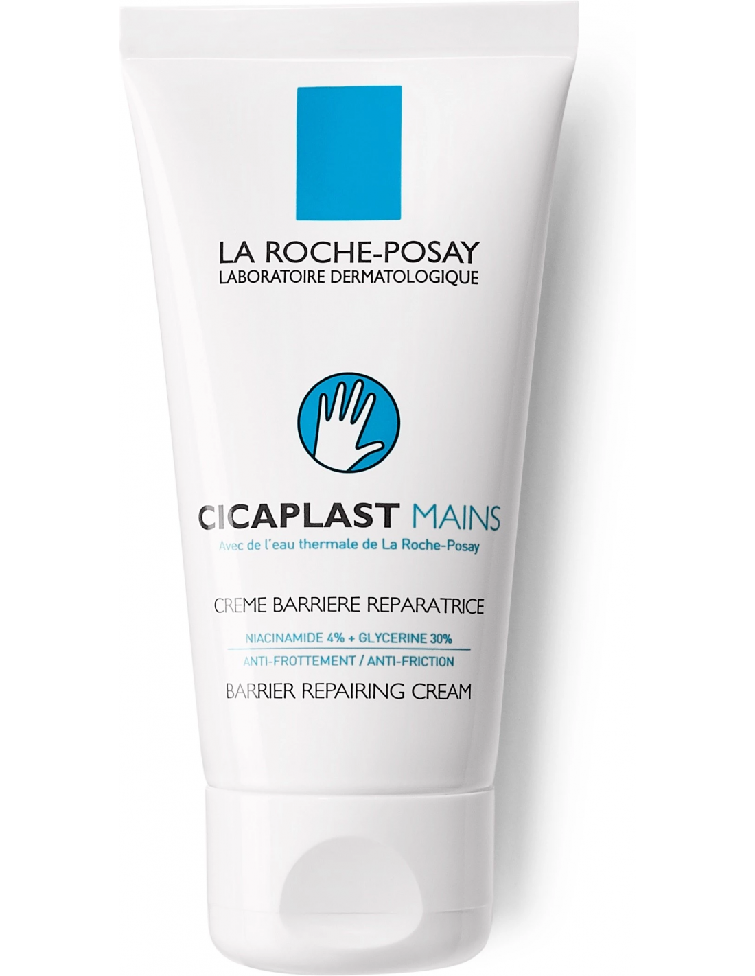 Crema reparadora efecto barrera calma, protege y restaura la barrera cutánea de las manos excesivamente trabajadas, gracias a su fórmula que combina (un 4 % de niacinamida) y (un 30 % de glicerina), en una textura extremadamente cómoda.