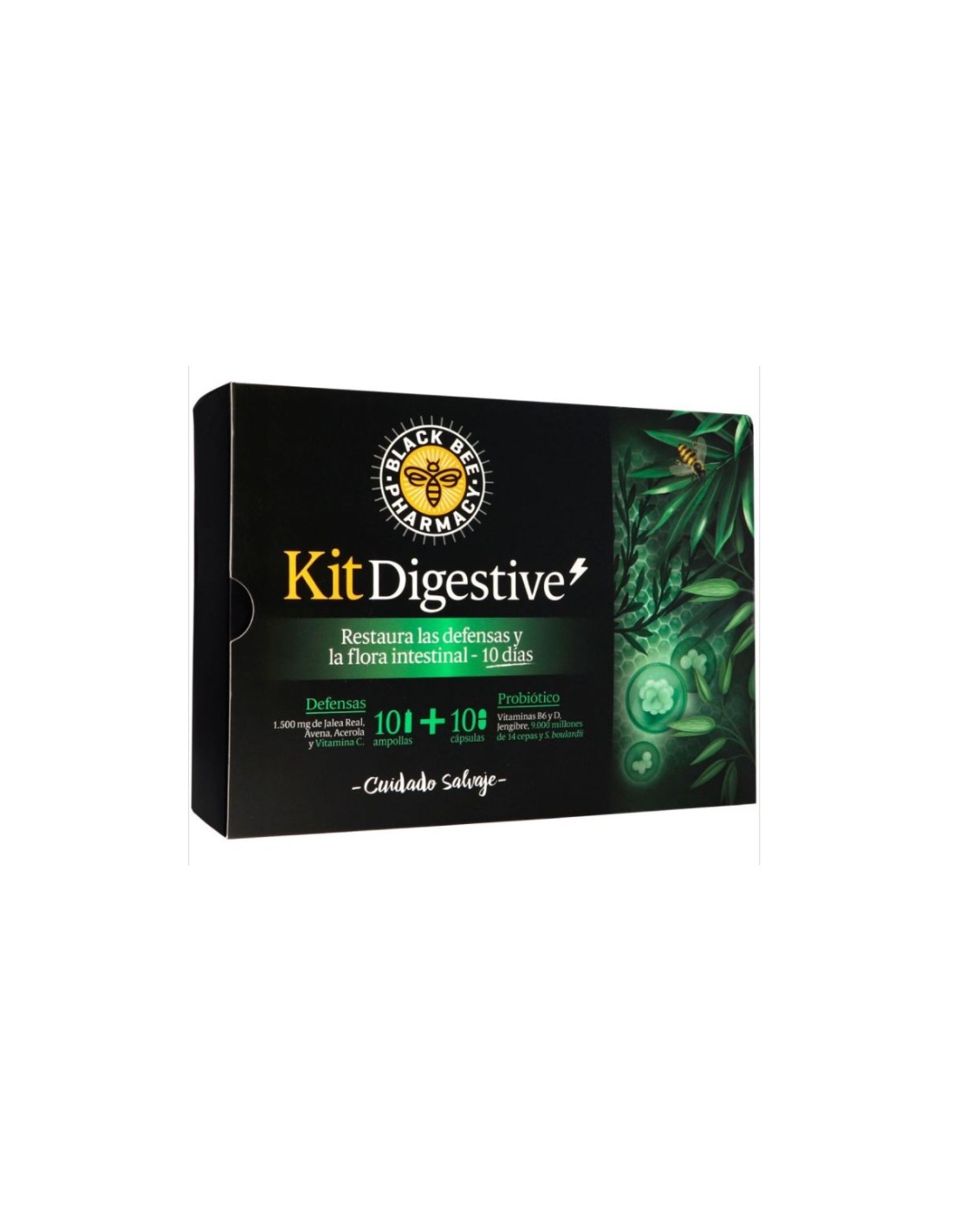 Las Defensas de Black Bee Kit Digestive están formuladas con activos naturales como propóleo, que ayuda a reforzar el sistema inmune y la resistencia a los agentes patógenos, miel, ricas en vitaminas y minerales, y una combinación de vitaminas para mejorar la salud digestiva.
