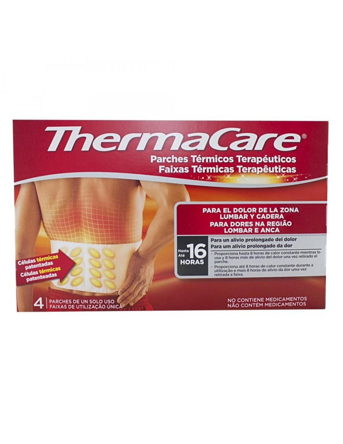 ThermaCare lumbar y cadera es adecuado para el tratamiento de las molestias y los dolores musculares y articulares, así como para la tensión muscular en la región lumbar.