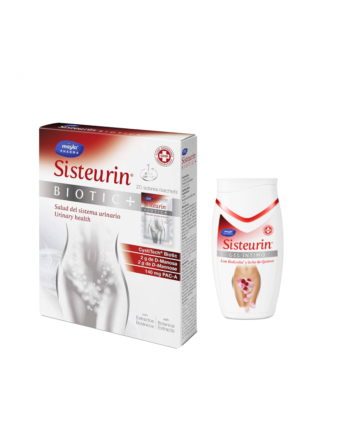 Contiene Cystitech Biotic +, un complejo formulado específicamente para ofrecer una combinación perfecta entre PAC-A y probióticos (3.000 millones de lactobacilos y bifidobacterias y 140 mg de PACs tipo A, procedentes del extracto de Arándano Rojo Americano (Vaccinum macrocarpon) y 2 gramos de D-Manosa que ayuda a proteger las paredes de la uretra y vejiga de la adhesión de bacterias.