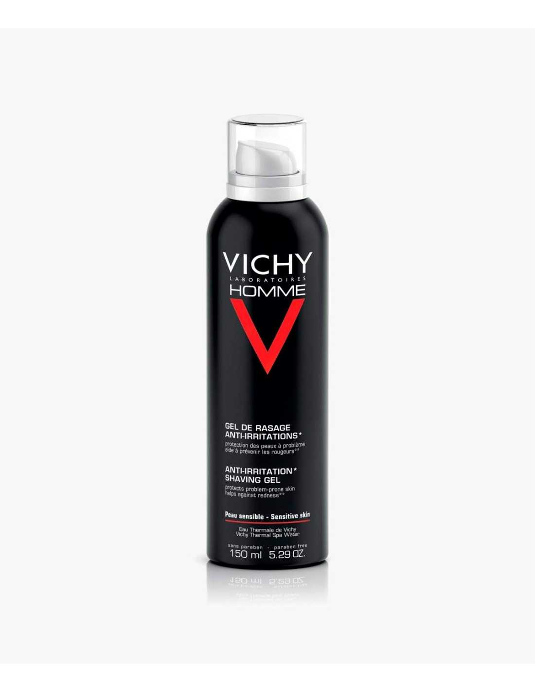 Aplicar Vichy Homme Gel de Afeitar Anti-Irritaciones sobre el rostro húmedo y limpiando previamente.
