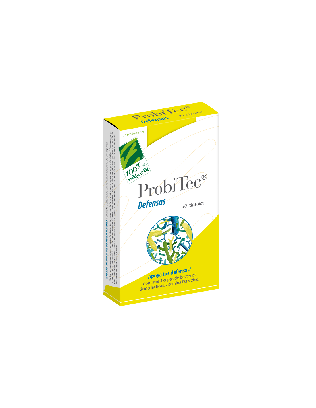 Complemento alimenticio de la línea ProbiTec que combina diferentes cepas de probióticos (bacterias ácido lácticas), con un recuento mínimo de 5 mil millones de bacterias vivas, con otros ingredientes que completan su función como son el zinc y la vitamina D.