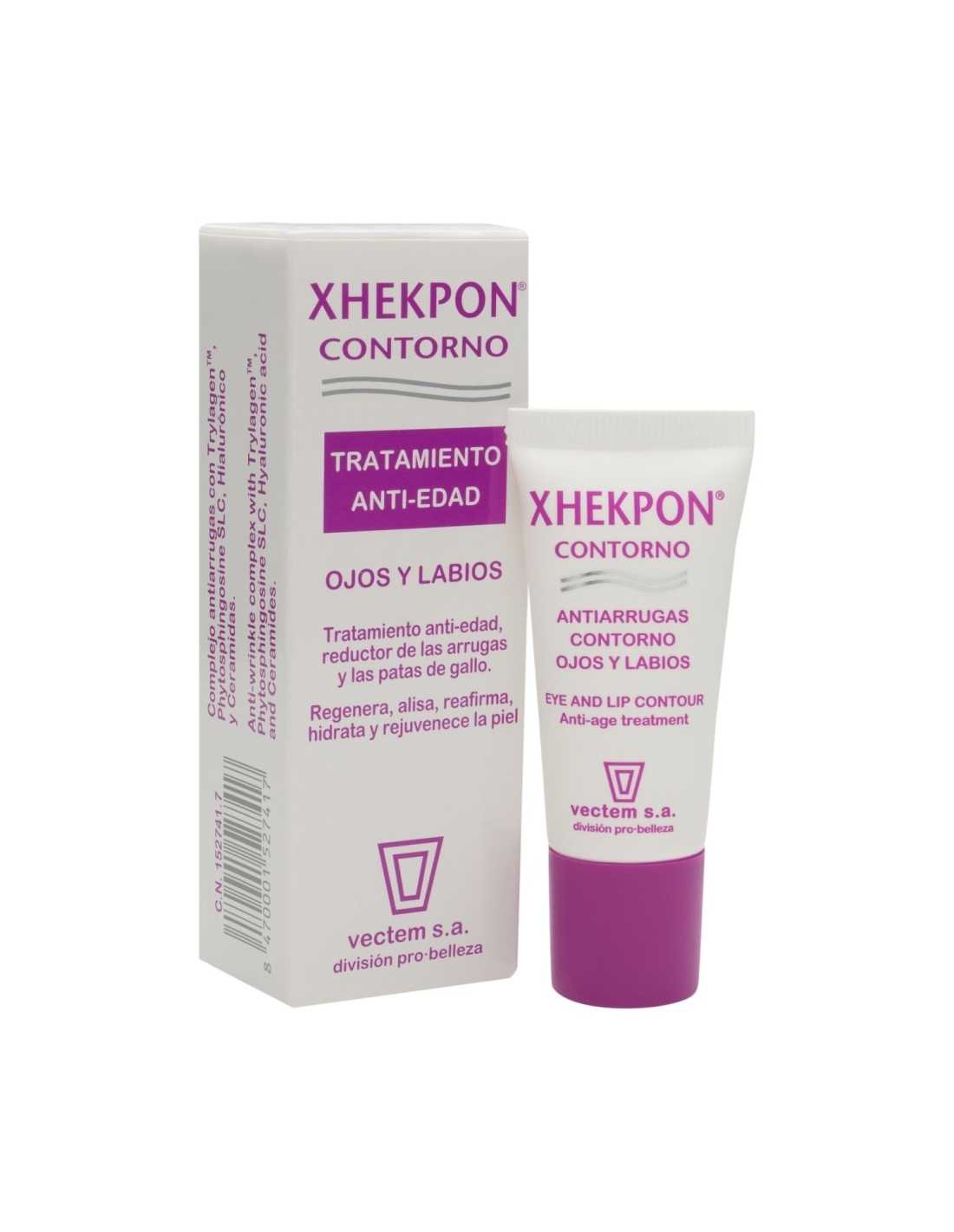 Xhekpon® contorno ojos 20ml es un tratamiento para la zona ocular y labios que ayuda a combatir los signos de envejecimiento y las líneas de expresión ofreciendo una fórmula tecnológica eficaz. Ante la ausencia de glándulas sebáceas en la zona de ojos y labios, se necesita un tratamiento multiactivo antiarrugas de colágeno hidrolizado para combatir la sequedad y la aparición de arrugas.