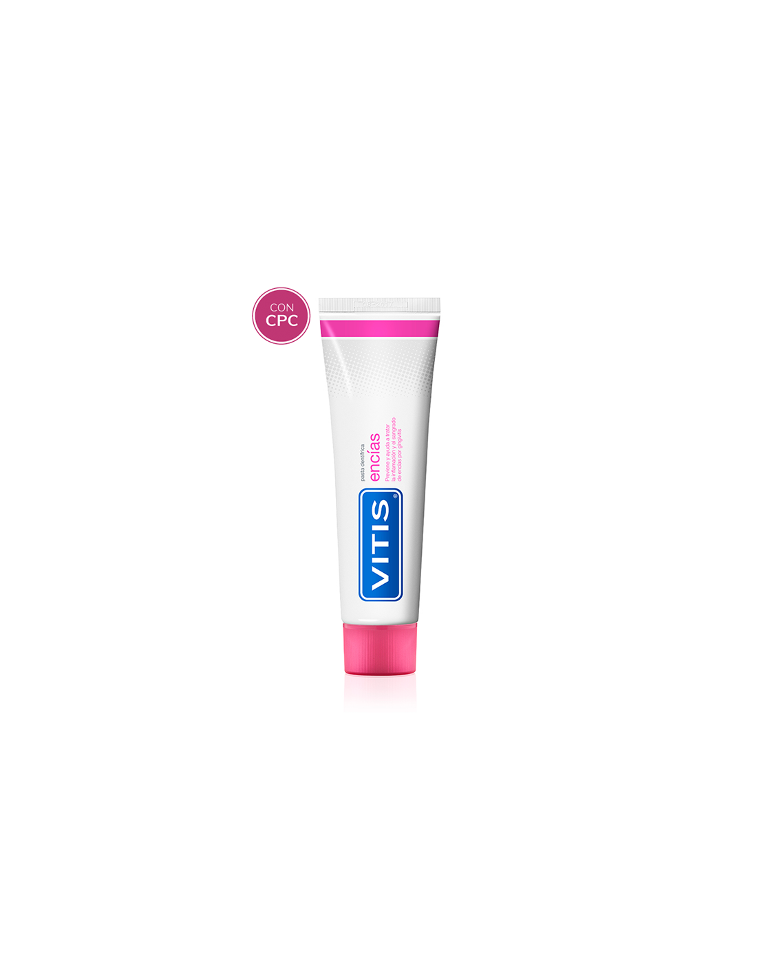 VITIS PASTA ENCIAS - 100 ML. Pasta de dientes para personas que son susceptibles a sufrir problemas en las encías o personas que son susceptibles a desarrollar gingivitis, como diabéticos, embarazadas o inmunodeprimidos. Apto para personas celiacas.