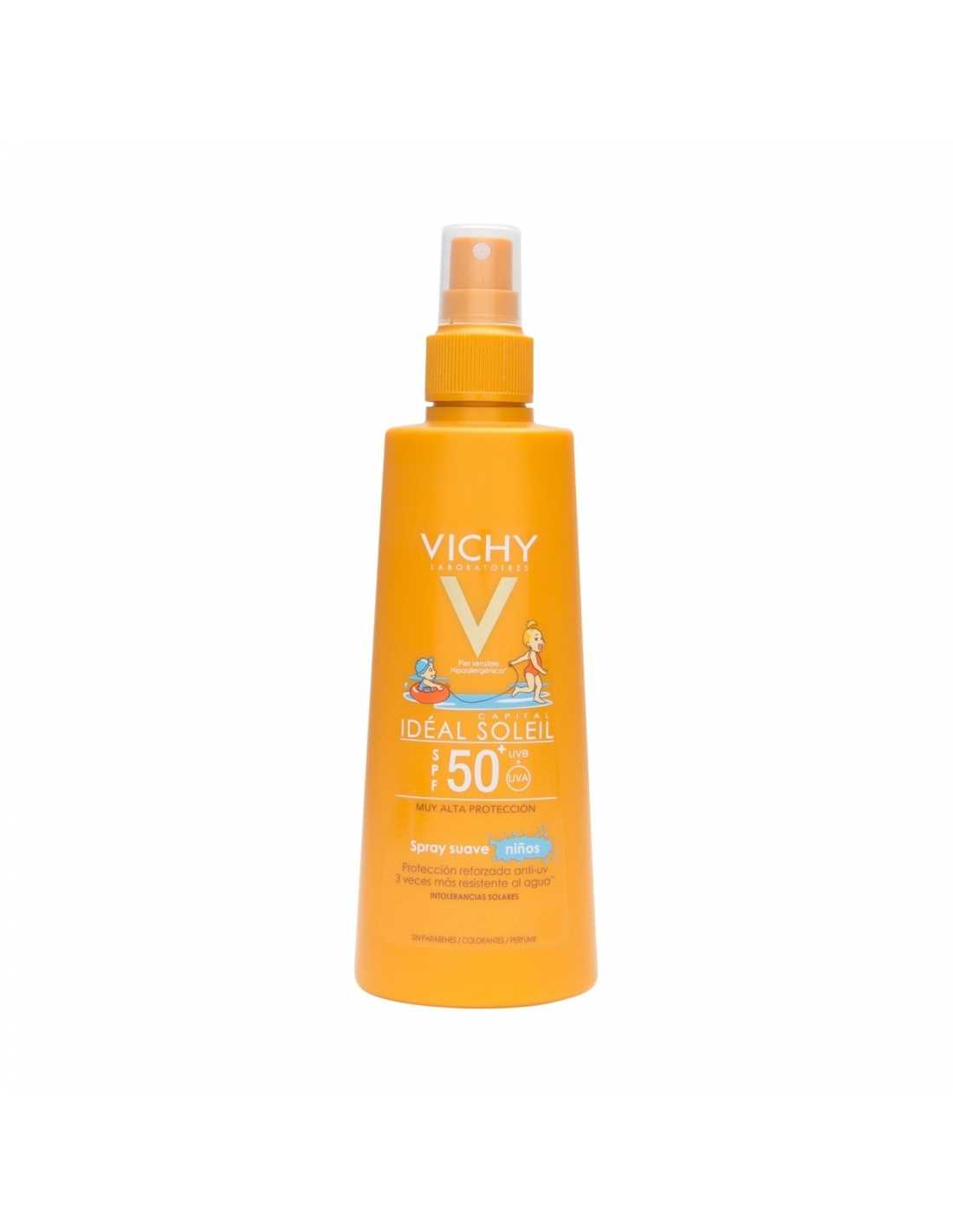 Vichy Capital Soleil spray infantil SPF50+ ofrece un práctico y cómodo spray solar, que facilita su aplicación por todo el rostro y el cuerpo, contiene un sistema de filtrado de amplio espectro, consiguiendo así una protección segura y fotoestable. Al incorporar agua termal a su composición, esta loción solar produce agradables efectos calmantes y regeneradores que permiten reparar las pieles más castigadas por el sol.