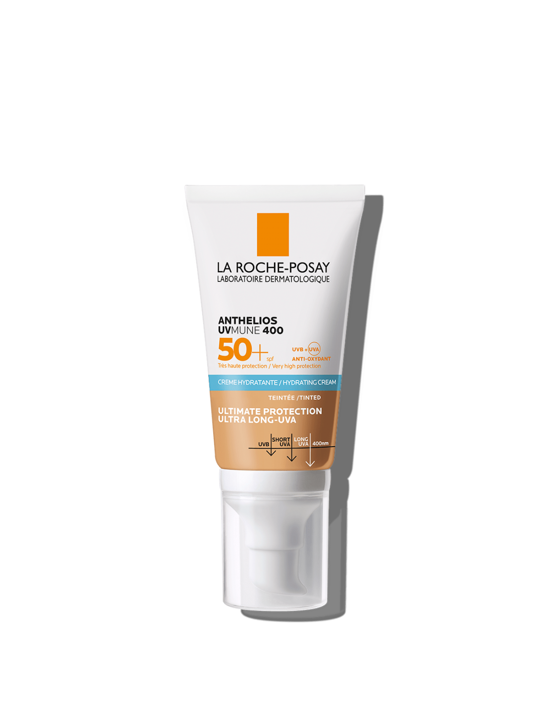 Crema Hidratante SPF50+ con color con MEXORYL400, el filtro UV más eficaz contra los rayos UV más insidiosos: ULTRA-LARGOS