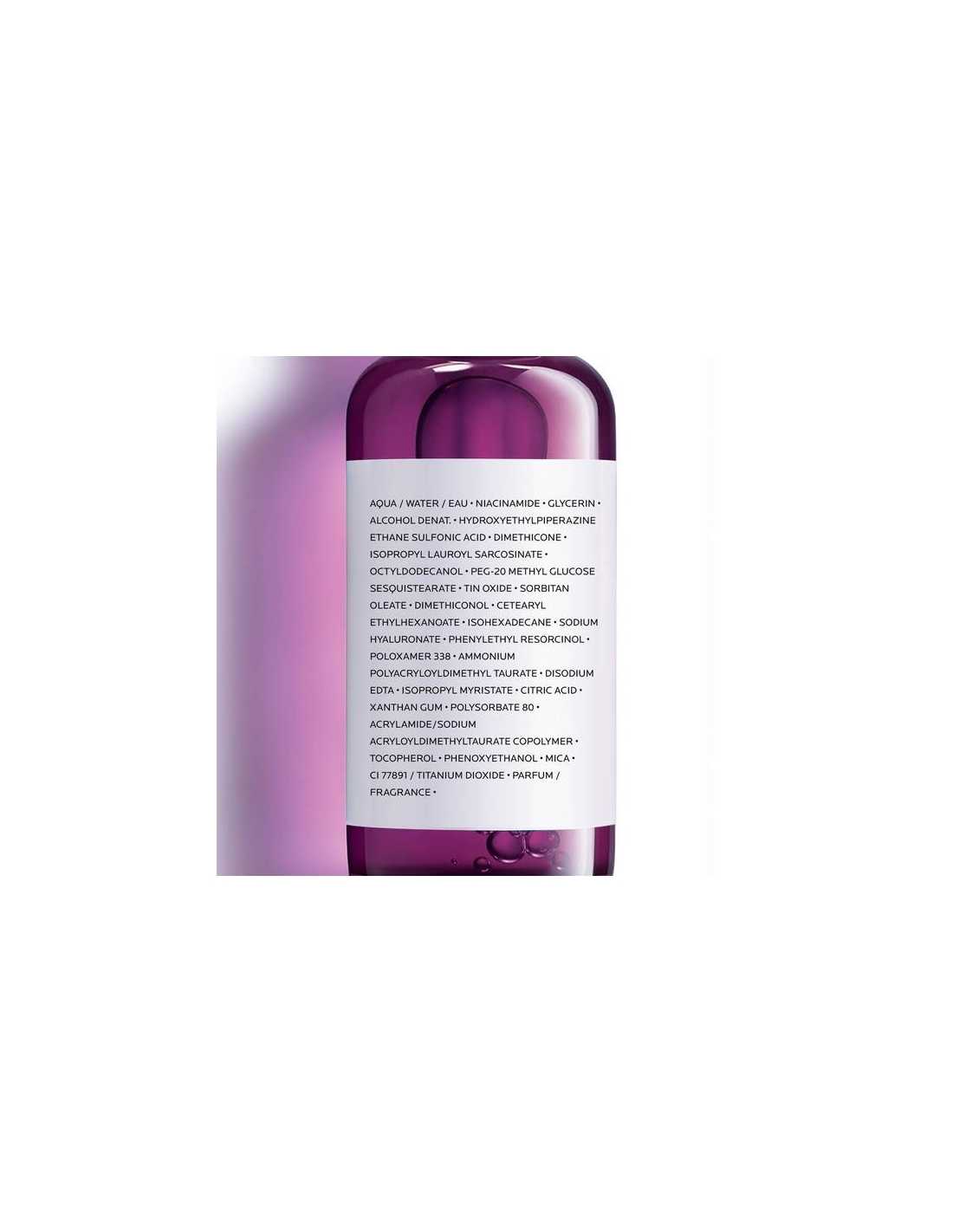AQUA / WATER ● NIACINAMIDE ● GLYCERIN ● ALCOHOL DENAT. ● HYDROXYETHYLPIPERAZINE ETHANE SULFONIC ACID ● DIMETHICONE ● ISOPROPYL LAUROYL SARCOSINATE ● OCTYLDODECANOL ● PEG-20 METHYL GLUCOSE SESQUISTEARATE ● TIN OXIDE ● SORBITAN OLEATE ● DIMETHICONOL ● CETEARYL ETHYLHEXANOATE ● ISOHEXADECANE ● SODIUM HYALURONATE ● PHENYLETHYL RESORCINOL ● POLOXAMER 338 ● AMMONIUM POLYACRYLOYLDIMETHYL TAURATE ● DISODIUM EDTA ● ISOPROPYL MYRISTATE ● CITRIC ACID ● XANTHAN GUM ● POLYSORBATE 80 ● ACRYLAMIDE/SODIUM ACRYLOYLDIMETHYLTAURATE COPOLYMER ● TOCOPHEROL ● PHENOXYETHANOL ● MICA ● CI 77891 / TITANIUM DIOXIDE ● PARFUM / FRAGRANCE