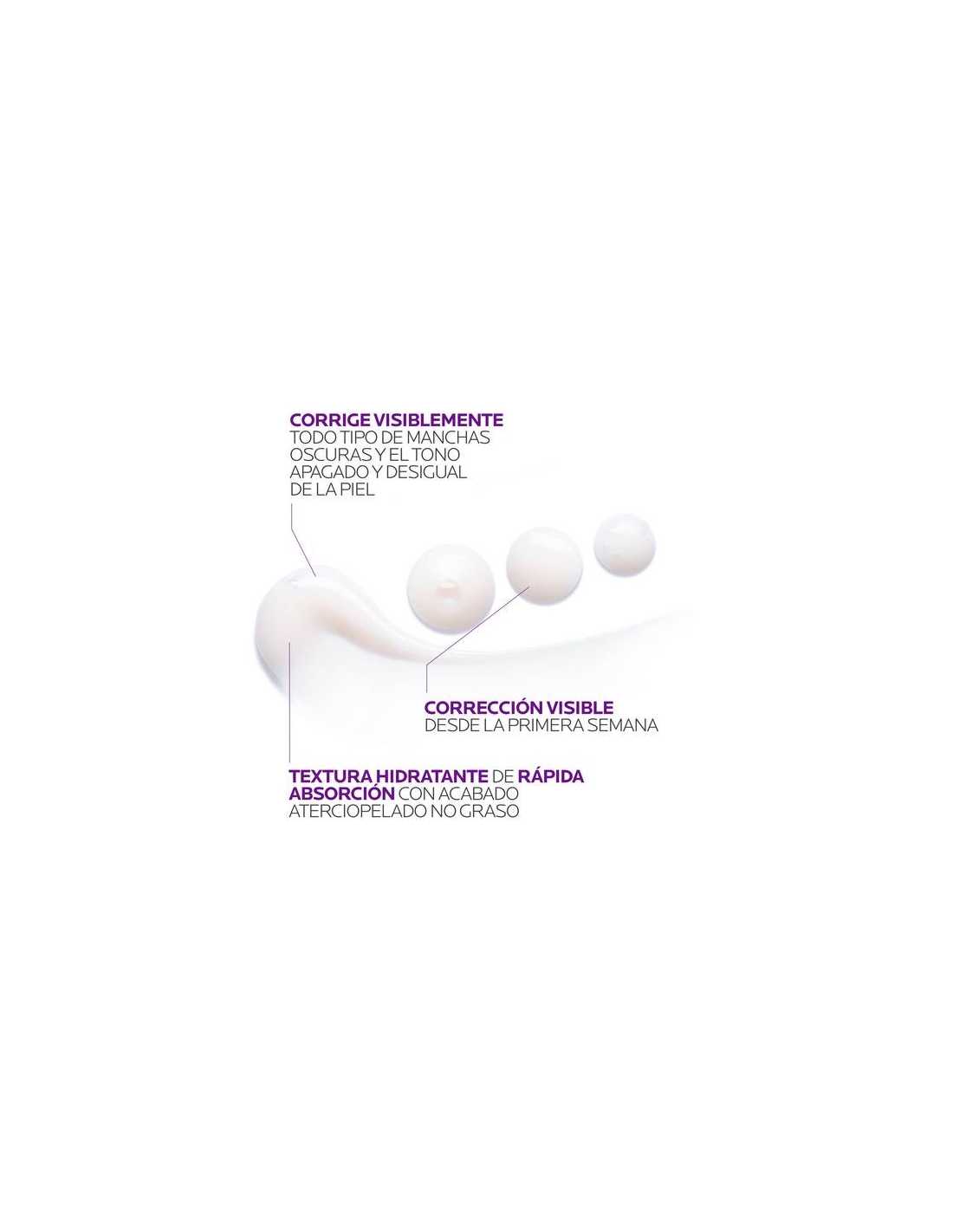 Corrige todo tipo de manchas, marcas, los problemas de hiperpigmentación y el tono desigual de la piel. Eficacia visible desde la primera semana