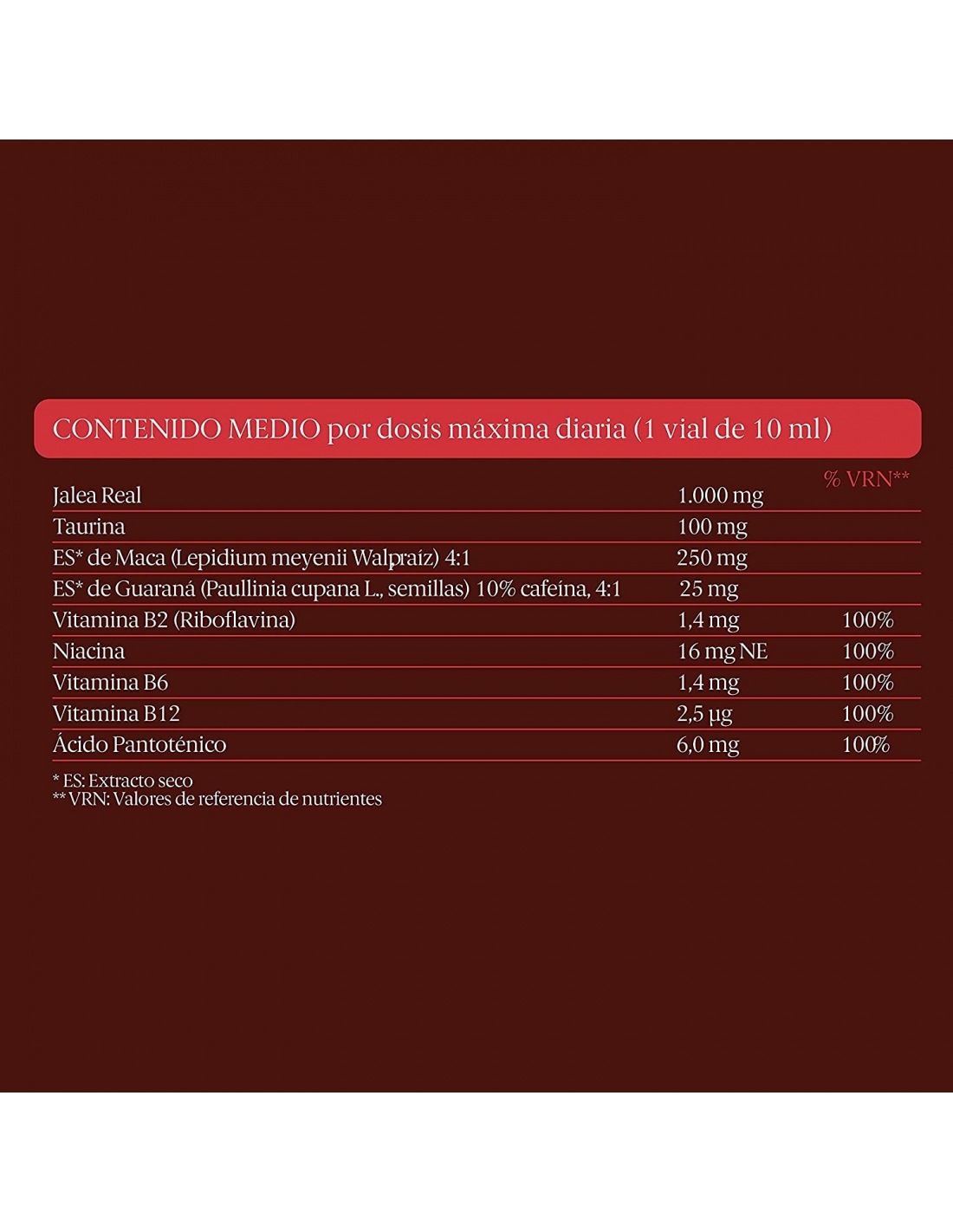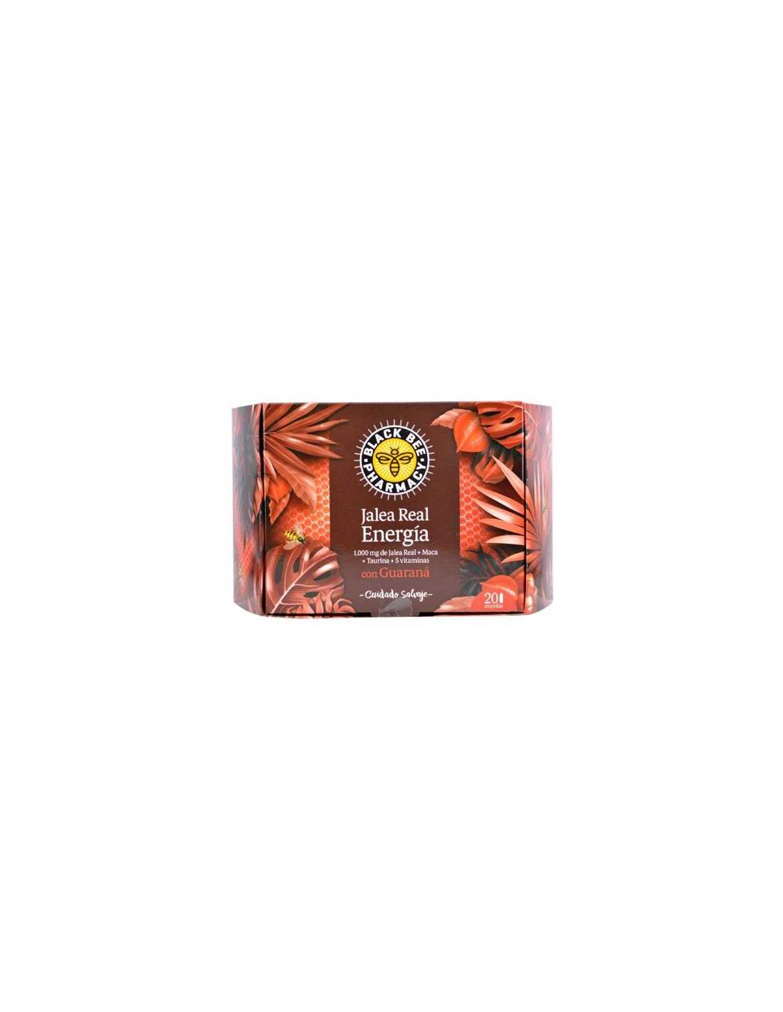 Con 1.000 mg de jalea real, maca, guaraná, taurina y vitaminas de grupo B.
